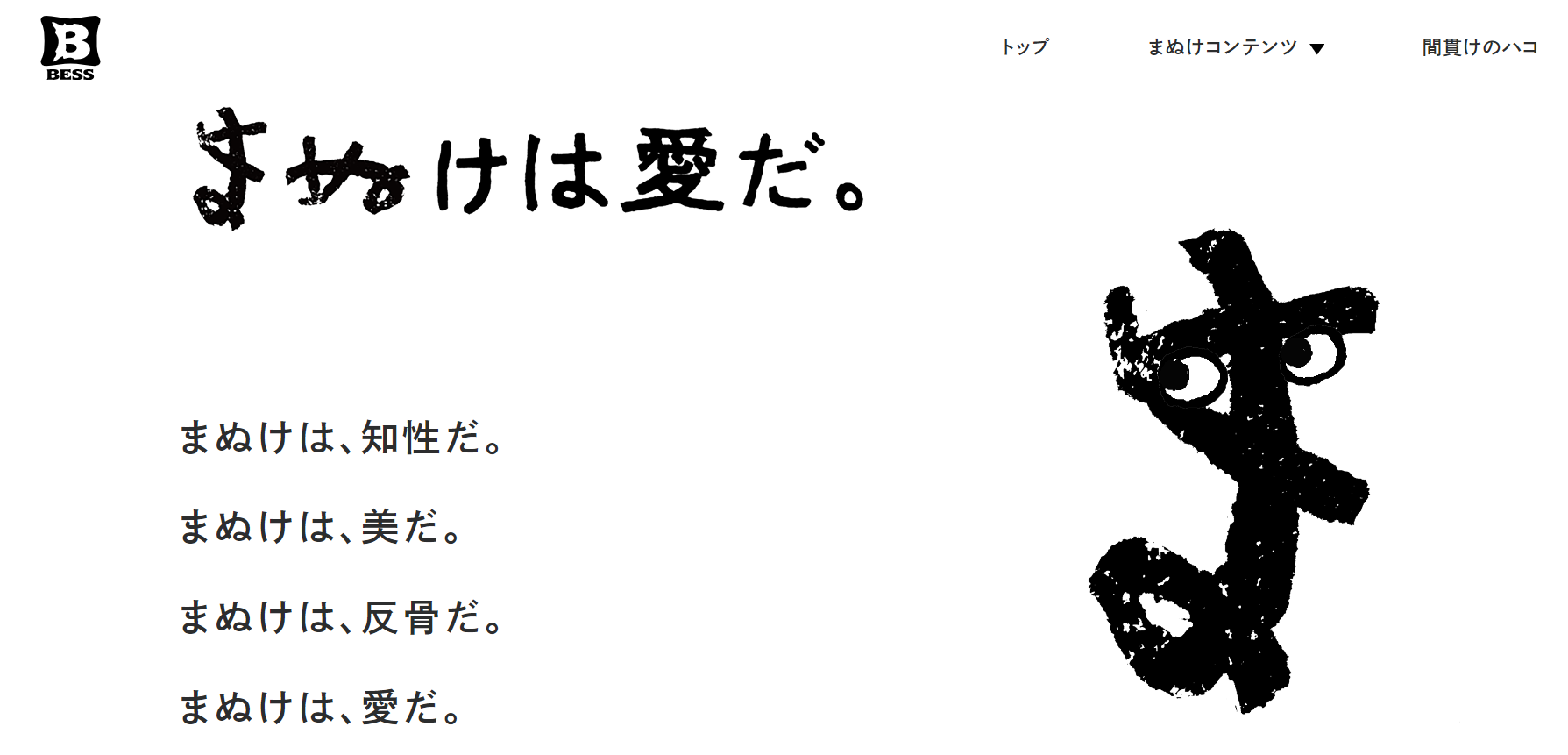 そして、このサイトのナビゲートをするのは、「ま」と「ぬ」のキャラクター。「ま」と「ぬ」による、BESSの家「間貫けのハコ」を舞台にした「まぬけ座」も登場。「間があって、ヌケがある」ゆる~い日常をしてお届けします。