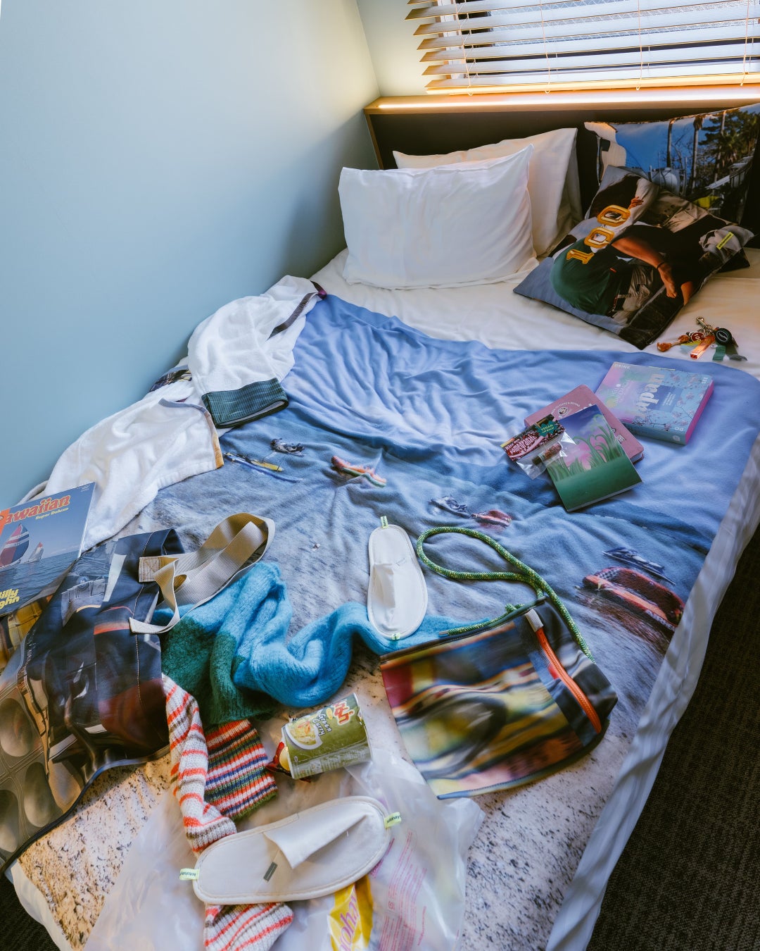 ご宿泊は1日2室限定。〈BEACH〉と〈PARK〉2つのテーマで、それぞれの情景をイメージした客室をご用意します。今回のコラボレーション限定デザインのホテルアメニティは、一部をギフトセットとしてお持ち帰りいただけます。また、過去のコレクションで使用した残布や端切れ素材を再活用したルームウェアやルームキーなど、ブランドの空気をそのまま肌で感じていただけるアイテムもご用意。kotohayokozawaの世界観を、五感を通して体験していただける特別な一晩の体験をお届けいたします。