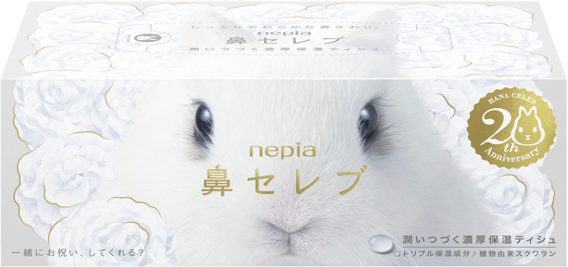 「ネピア 鼻セレブティシュ」は空気中の水分をティシュに取り込むネピア独自の「トリプル保湿」と「植物由来スクワラン」により、濃厚な潤いがつづく保湿ティシュとして、2004年の発売当初より、多くの方々にご愛顧いただいております。まるで潤いのベールをまとったような肌触りが特徴の鼻セレブティシュは、風邪・花粉の時期はもちろん、デリケートなお肌のケアやメイクアップ時にも最適なアイテムとして様々なシーンでご活用いただいております。
