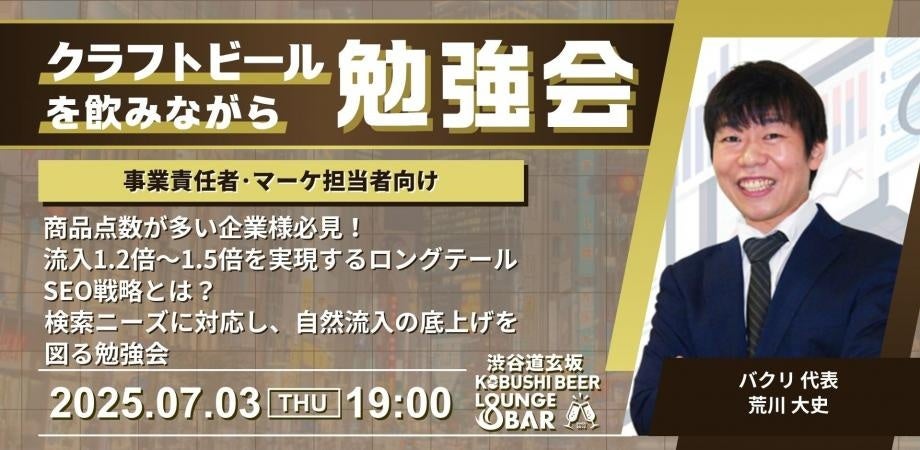 渋谷道玄坂『KOBUSHI BEER LOUNGE & BAR 』で、クラフトビールを飲みながら学べる勉強会を開催!7月3日(木)19:00~「事業責任者・マーケ担当者向けロングテールSEO戦略」