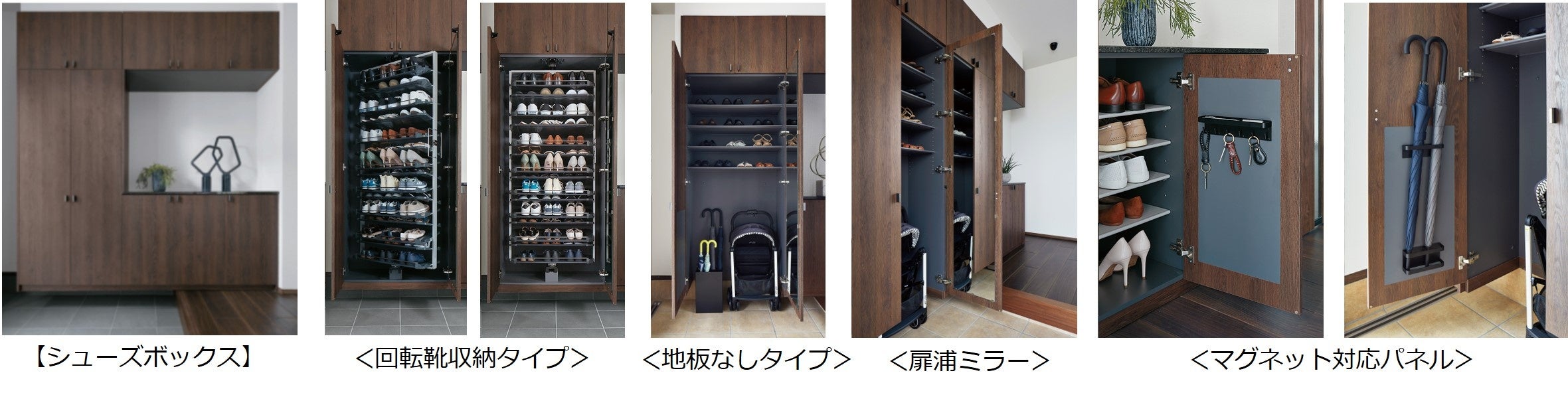 今回の調査では、約半数の人が「靴」の収納スペースが足りていないという結果でしたが、裏表両面に収納でき収納力が約1. 3倍にアップする「回転靴収納タイプ」ならそんなお悩みも解決します。そのほか、屋外で使用したベビーカーやアウトドアグッズなどを収納できる「地板なしタイプ」も人気の仕様となっています。