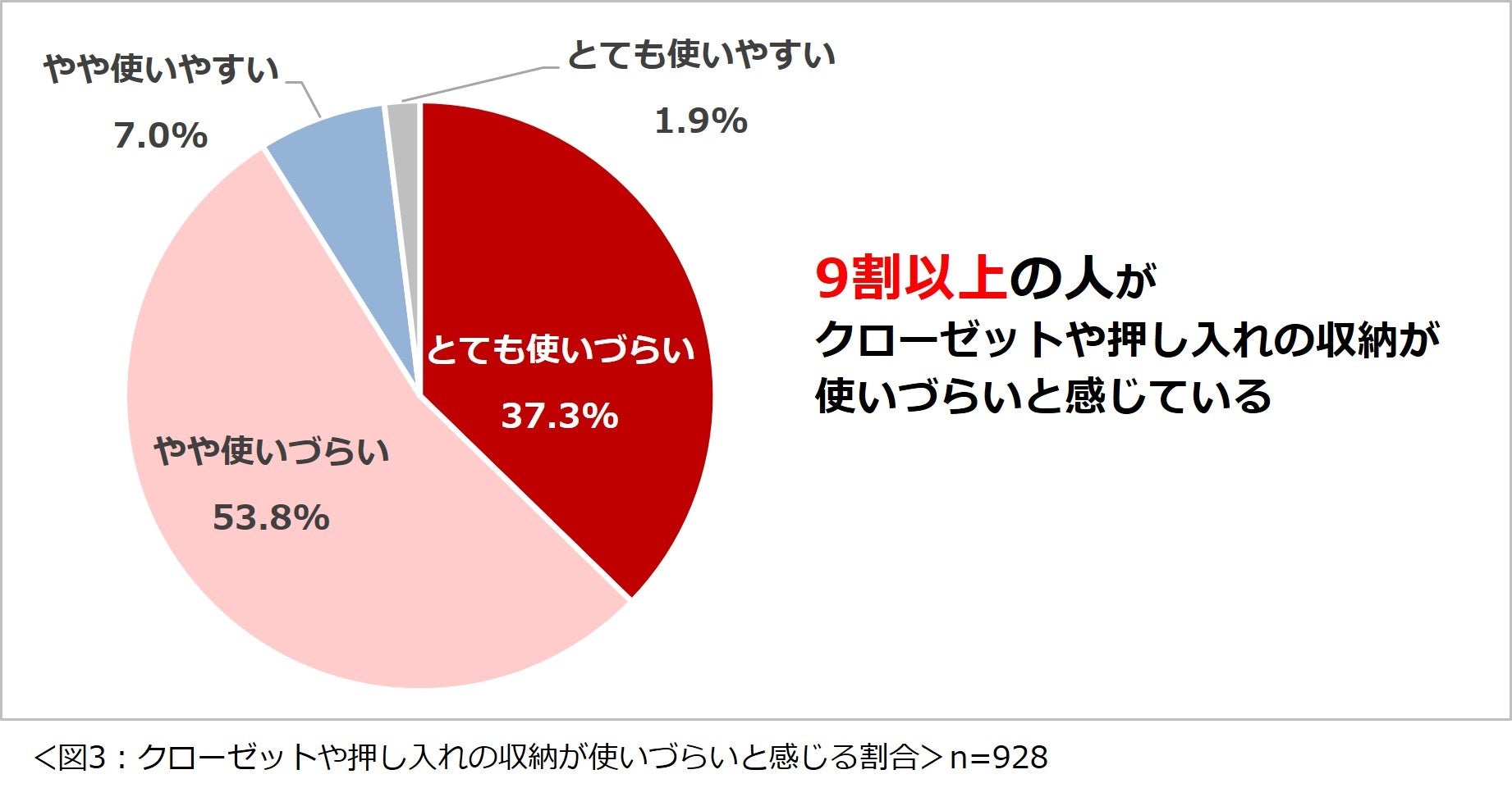 9割以上の人がクローゼットや押し入れの収納が使いづらいと感じている。