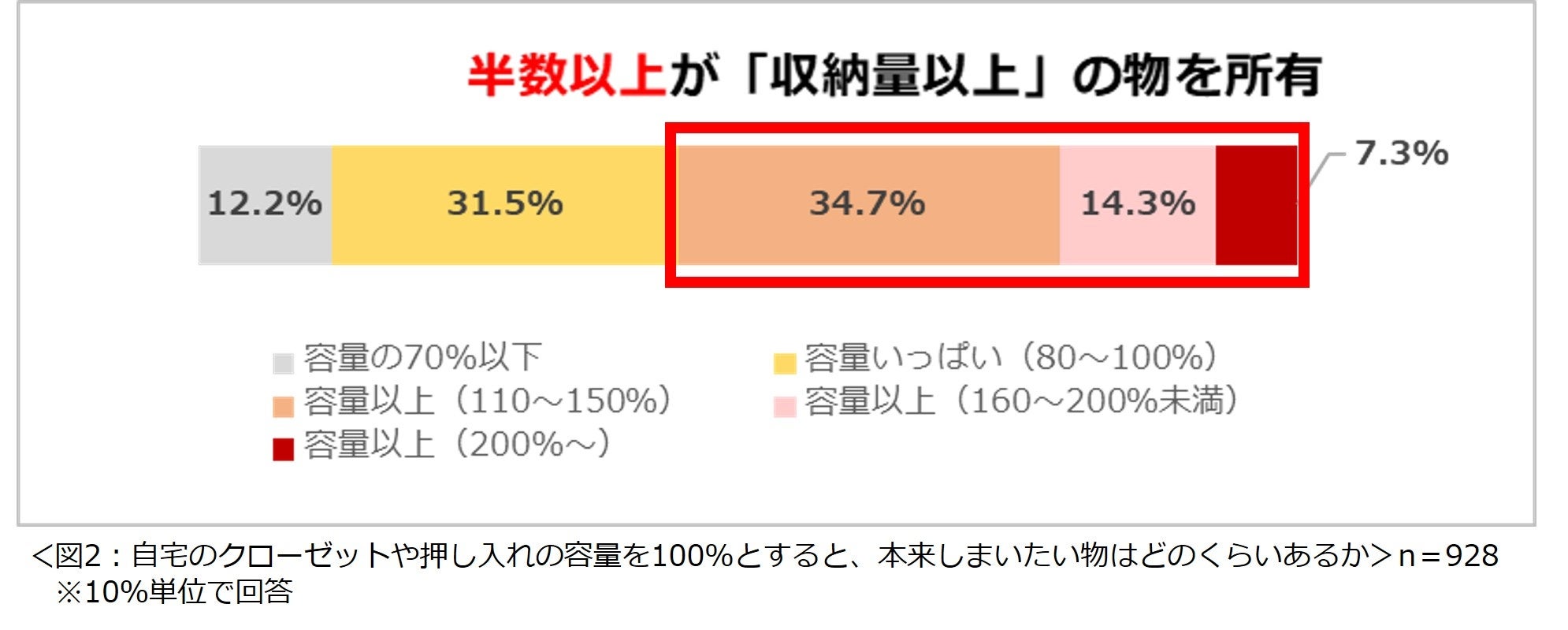 自宅の収納量よりも収納したい物が多い状況にあると回答した人が半数以上。