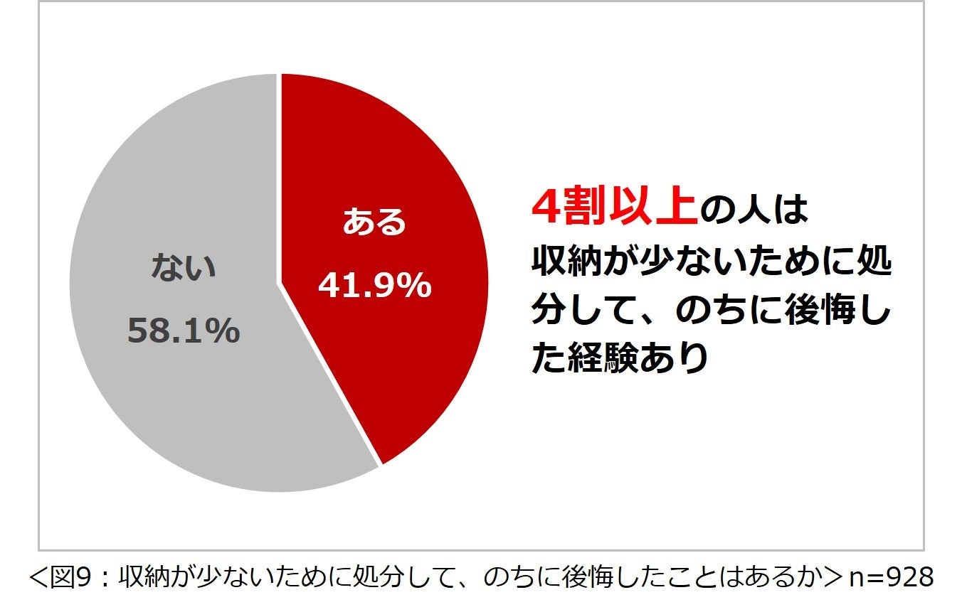 「収納が少ないために処分して、のちに後悔したことはありますか?」という質問に、「ある」と回答した人は4割以上となりました。(図9)