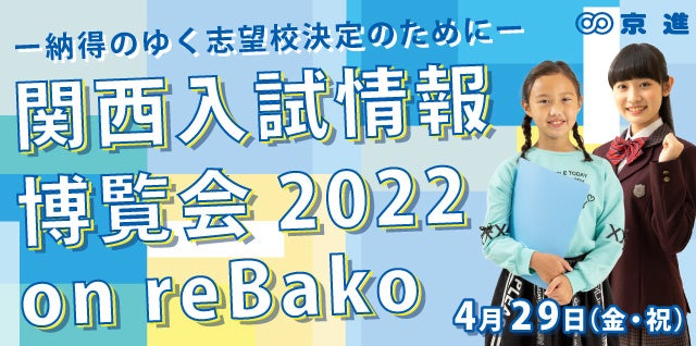 京都・滋賀・愛知を中心に学習塾を展開する京進は、4月29日(金・祝)11:30~14:30に、関西の中学入試・高校入試のためのイベント、『関西入試情報博覧会2022 on reBako』をオンラインで開催いたします。