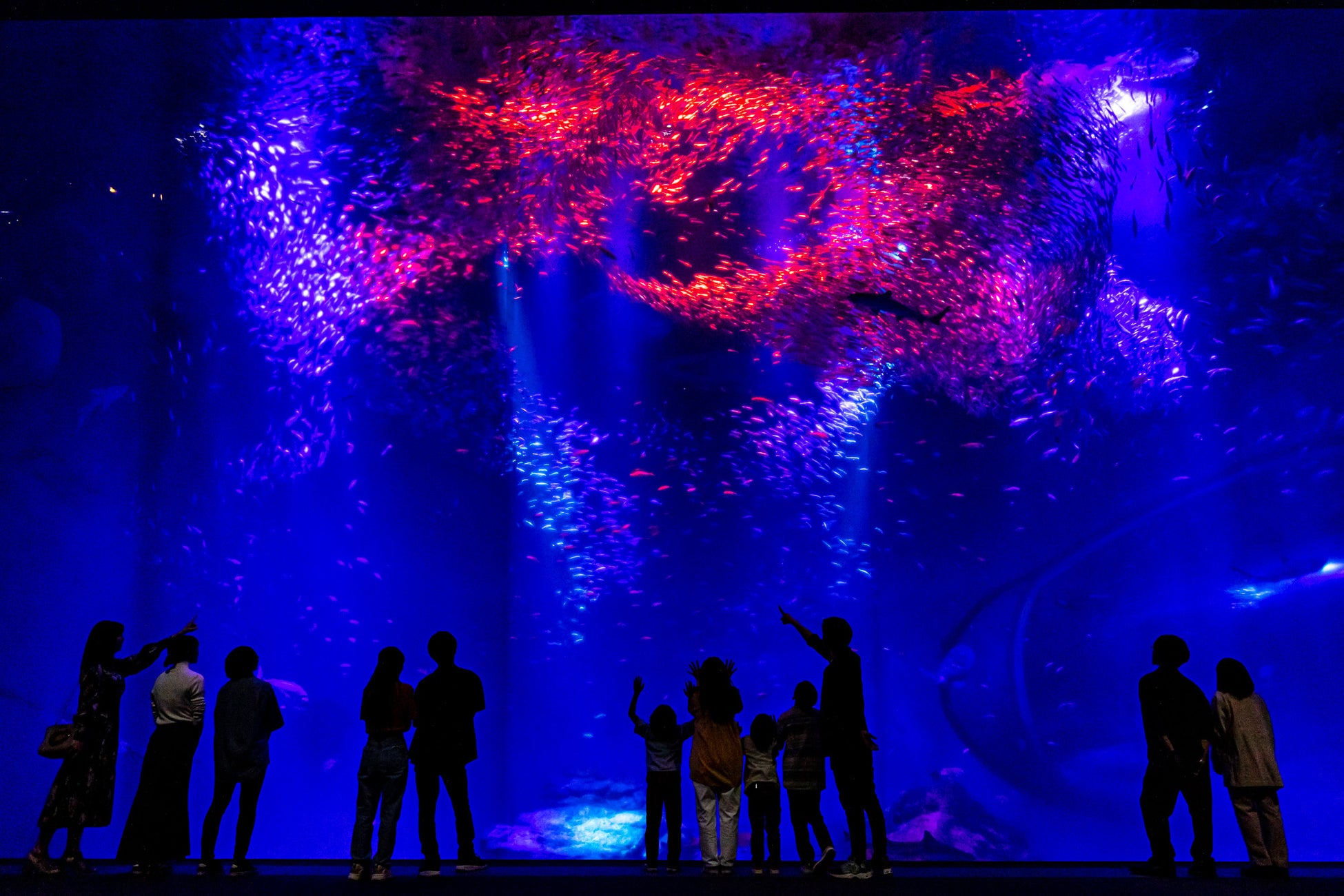 約20,000匹のイワシが光とBGMに合わせダイナミックに群れ動くプログラム。