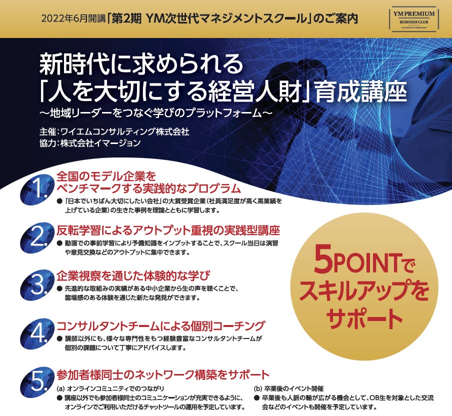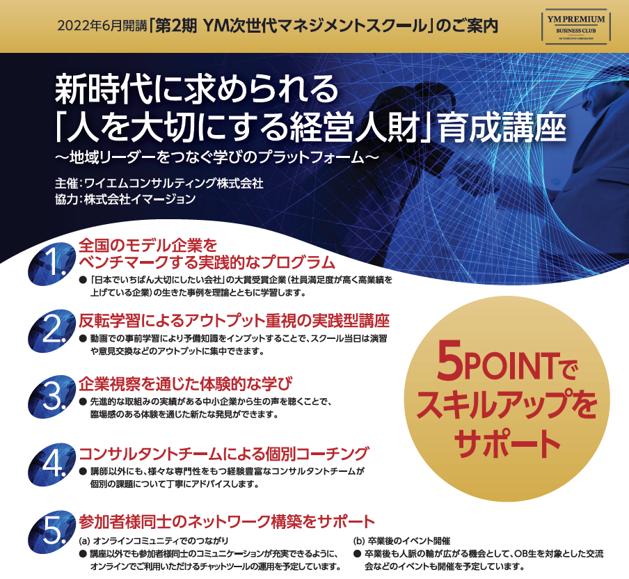 【ワイエムコンサルティング主催】「第2期 YM次世代マネジメントスクール」にYKプランニング代表の岡本が登壇します