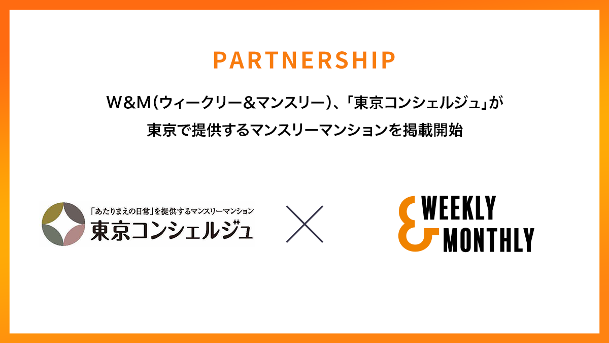 Weekly&Monthly株式会社(本社:北海道札幌市北区、代表取締役:黒木 健次郎)は、ウィークリー・マンスリーマンション総合情報サイト「W&M(ウィークリー&マンスリー)」において、「東京コンシェルジュ」(運営:株式会社トラストインフィニティー、本社:東京都港区新橋、代表取締役:二宮 伸夫)が東京都で提供するマンスリーマンションを掲載開始いたします。