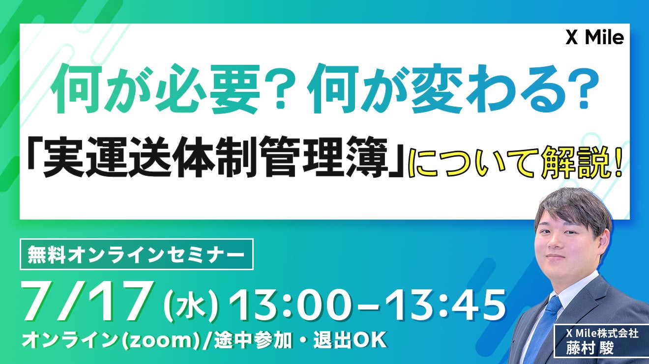 物流DXのX Mileが「実運送体制管理簿」について解説するセミナーを7月17日(水)に開催!