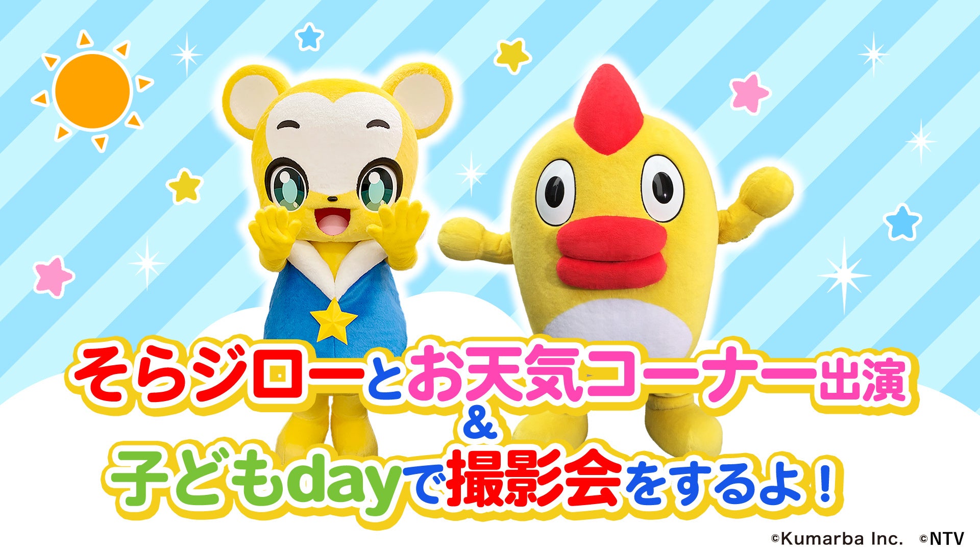 5月5日(金)6日(土)の2日間に渡り、日本テレビ本社社屋2階で、お天気キャラクター「そらジロー」ファミリーによるステージショーや、日本テレビアナウンサーによる読み聞かせコーナーなどを実施予定!
