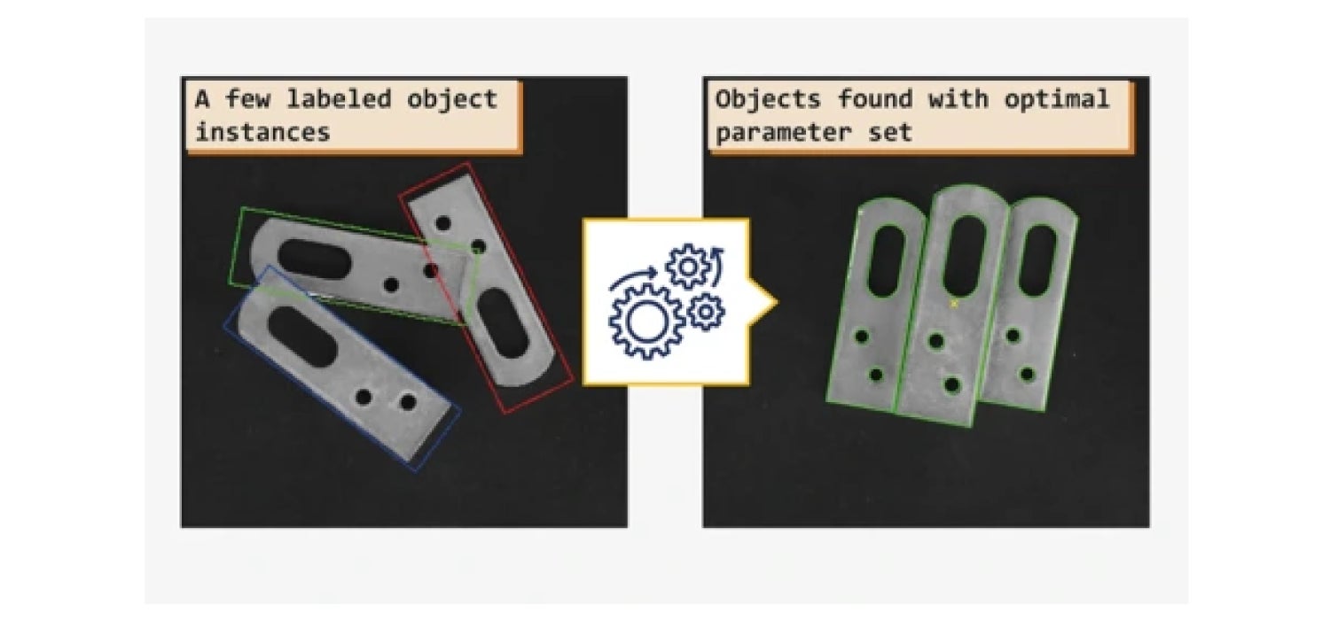 多くのお客様にご利用いただいている形状ベースマッチング機能がさらに使いやすくなりました。HALCON 24.11 では、特許出願中の拡張パラメータ推定機能が実装されます。これにより、MinScoreをはじめとする内部パラメータをより細かく推定できるようになり、一部のアプリケーションでの実行速度、および精度が大幅に向上します。マシンビジョンの専門知識を持たないユーザーでもパラメータの適切な設定が可能になる、というのも、この拡張パラメータ推定機能の特徴の一つです。