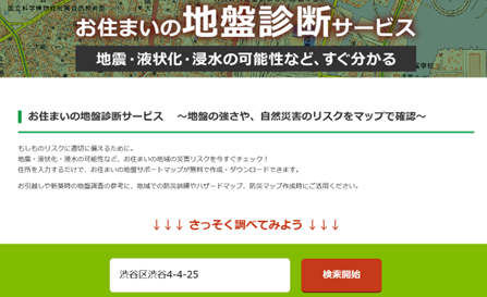 こくみん共済 coop の公式サイトで公開している、住まいの住所を入力いただくだけで、地震・液状化・水害の可能性を診断できる「地盤診断サービス」を体験できるコーナーを設置。