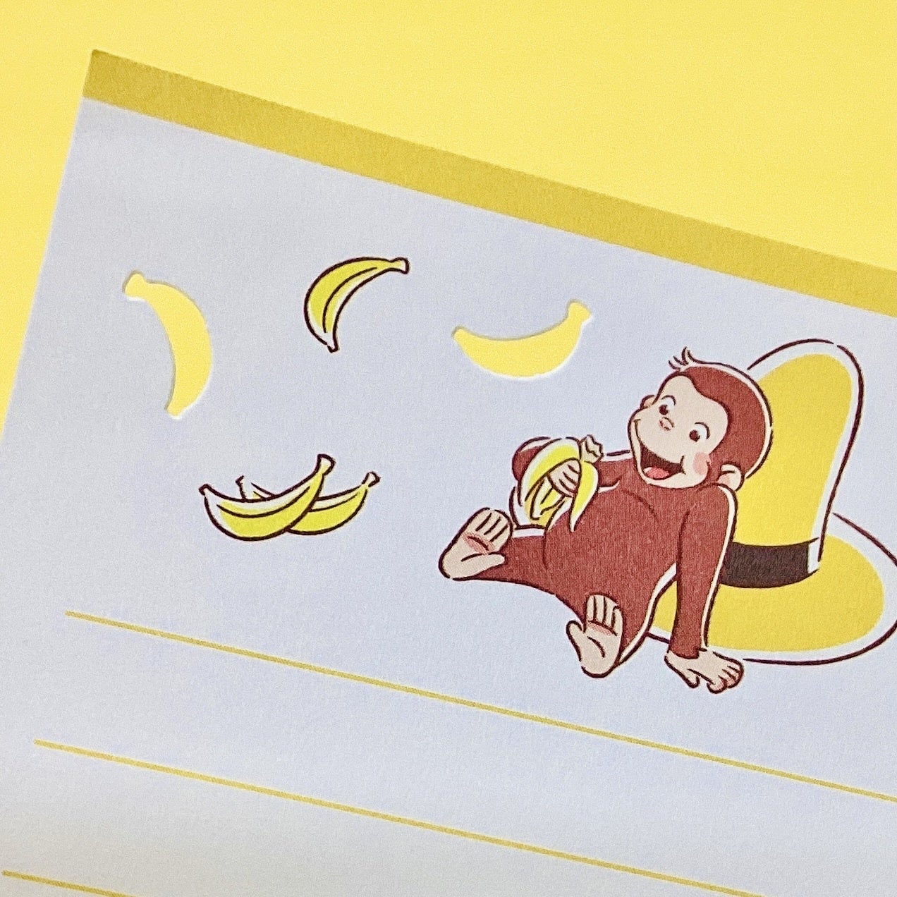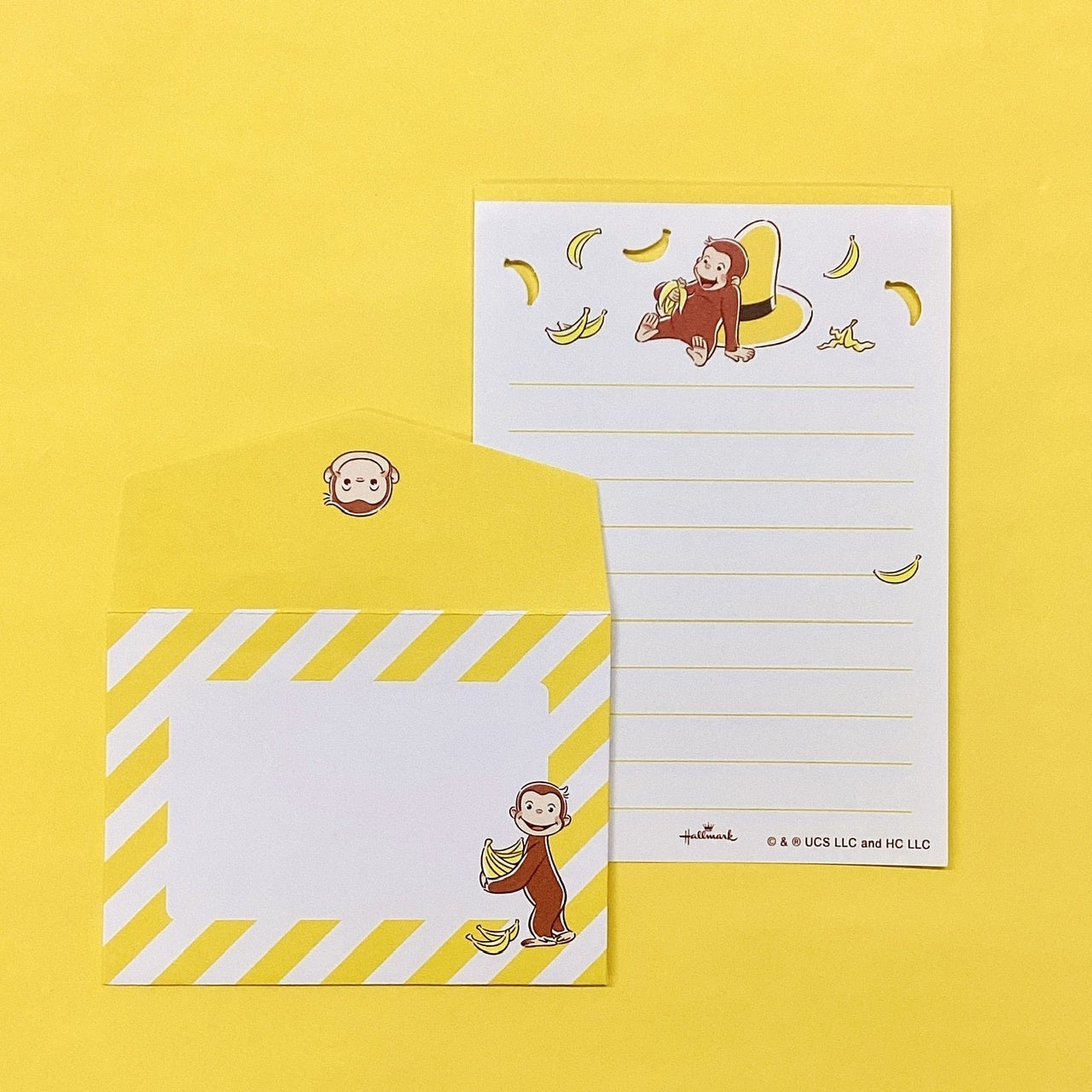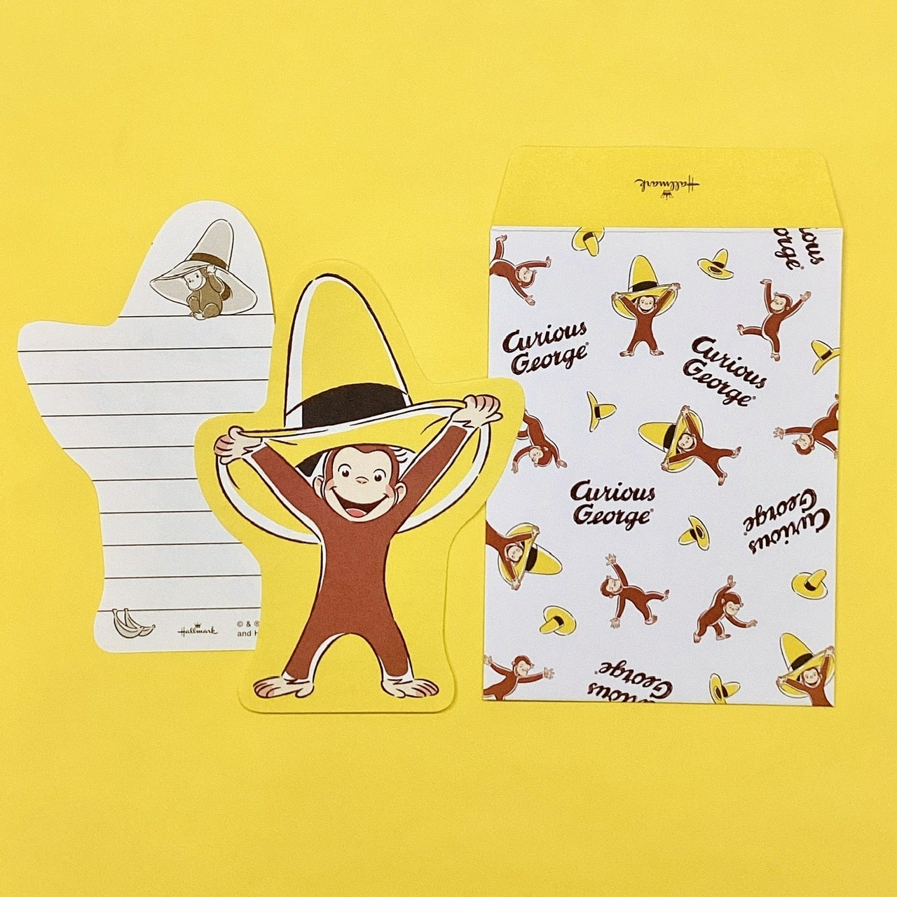 ちょっとしたメッセージを可愛く包むミニレターセットに、「おさるのジョージ」のデザインが登場! インパクトあるダイカットタイプと、メッセージを書きやすい四角タイプの2種類。