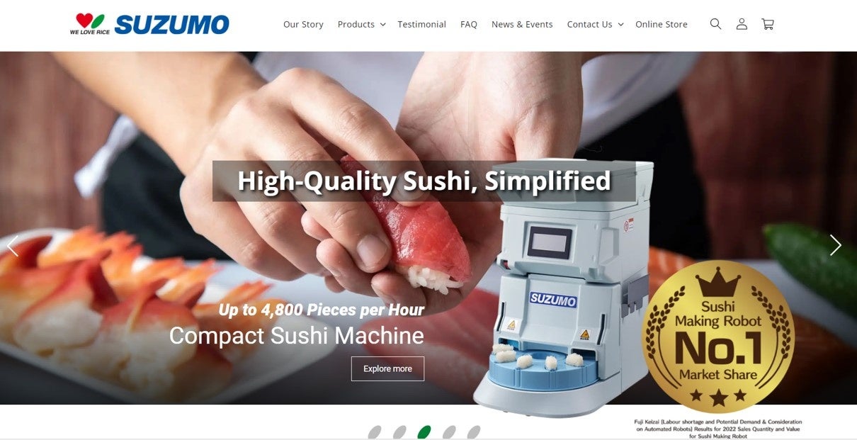 1981年に世界初の寿司ロボットを開発し、寿司の大衆化を実現したリーディングカンパニーです。米飯加工ロボットにおいて国内外で高いシェアを占め、お寿司、おにぎり、丼ものなど、世界80か国以上の国々の様々な食のシーンで幅広く利用されています。近年では、寿司ロボットシェアNo.1(出典:富士経済「労働人口不足の未来予測から見たロボット潜在需要に関する考察」すしロボット販売数量・金額2022年実績)、ご飯盛り付けロボットシェアNo.1(出典:富士経済「労働人口不足の未来予測から見たロボット潜在需要に関する考察」米飯盛り付けロボット販売数量・金額2022年実績)の獲得や、飲食店において店舗業務の効率化と人手不足対策に大きな貢献を果たしたという点が評価され、第20回外食アワード2023(主催:外食産業記者会)を受賞するなど、業界でも注目を集めております。『食の「おいしい」や「温かい」を世界の人々へ』を掲げ、細分化する食に関するニーズをいち早く捉えて市場にご提案し、常に新しいフードビジネスを開拓する企業として躍進しています。