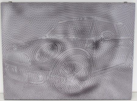 (近くで見ると「車」、離れて見ると「猫」)