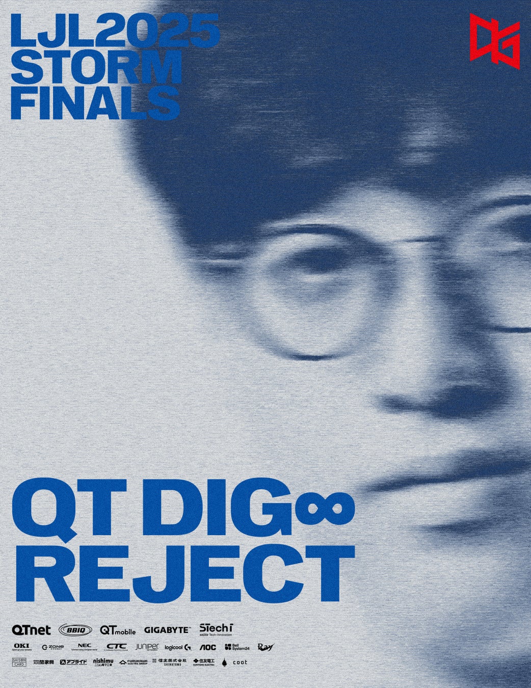 QT DIG∞ League of Legends部門は、4月から行われ12チームが進出したメインステージにおいて、2位でノックアウトステージ進出。4月29日に開催された試合に勝利し、「LJL 2025 STORM FINALS」へ出場を果たすことができました。