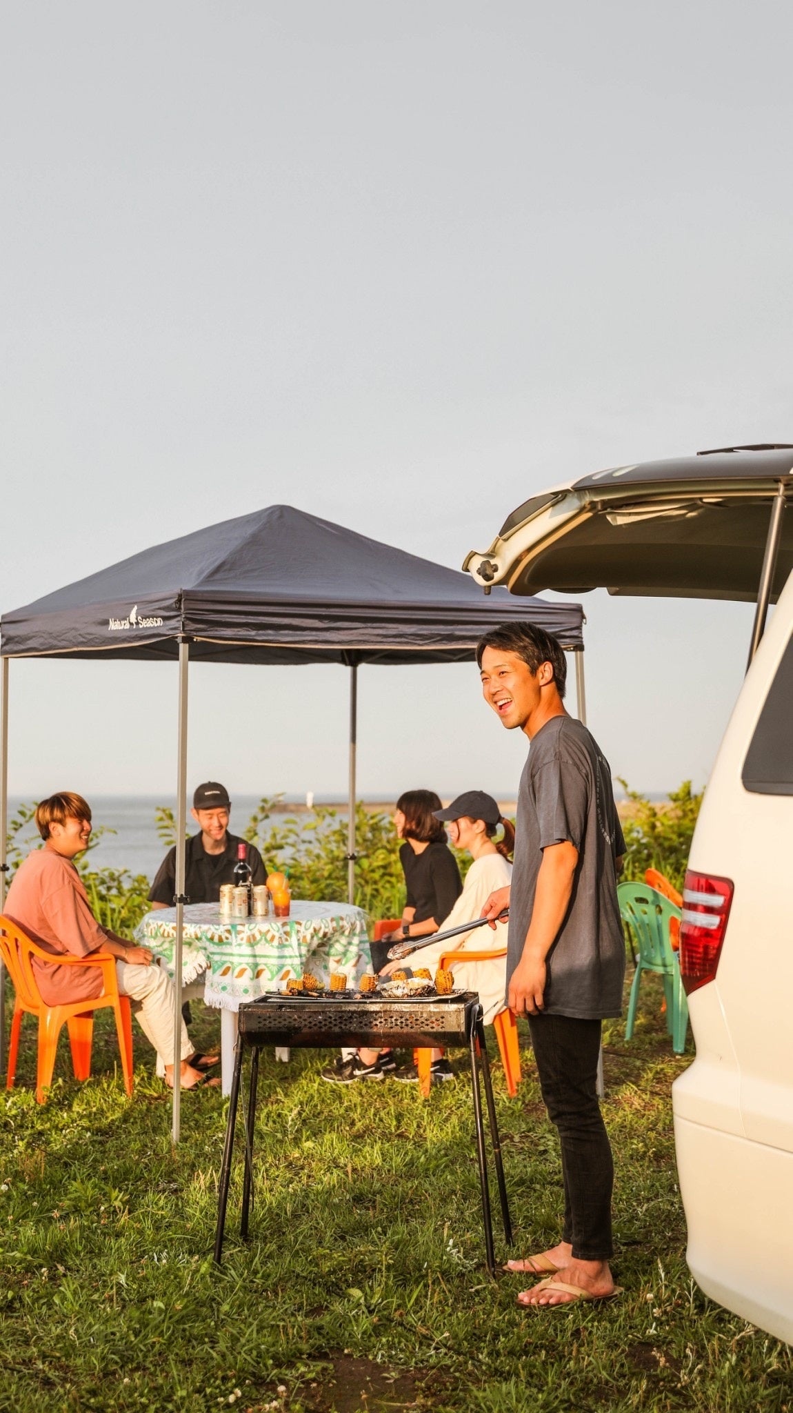 1日8組限定の区画制にて運営しております。海が目の前の区画を「オーシャンプラン」/3区画・海まで96歩の区画を「スタンダードプラン」/5区画と、海が見える位置でのサウナブースを設けてお客様にBBQ・CAMP・サウナを楽しんで頂いております。