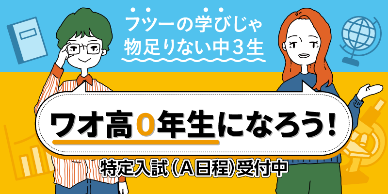 フツーの学びじゃ物足りない中3生、ワオ高0年生になろう!受験勉強を手放したら、未来が一足先にやってくる!2023年度・ワオ高校 特別入試Web出願【A日程】9/1 受付開始!