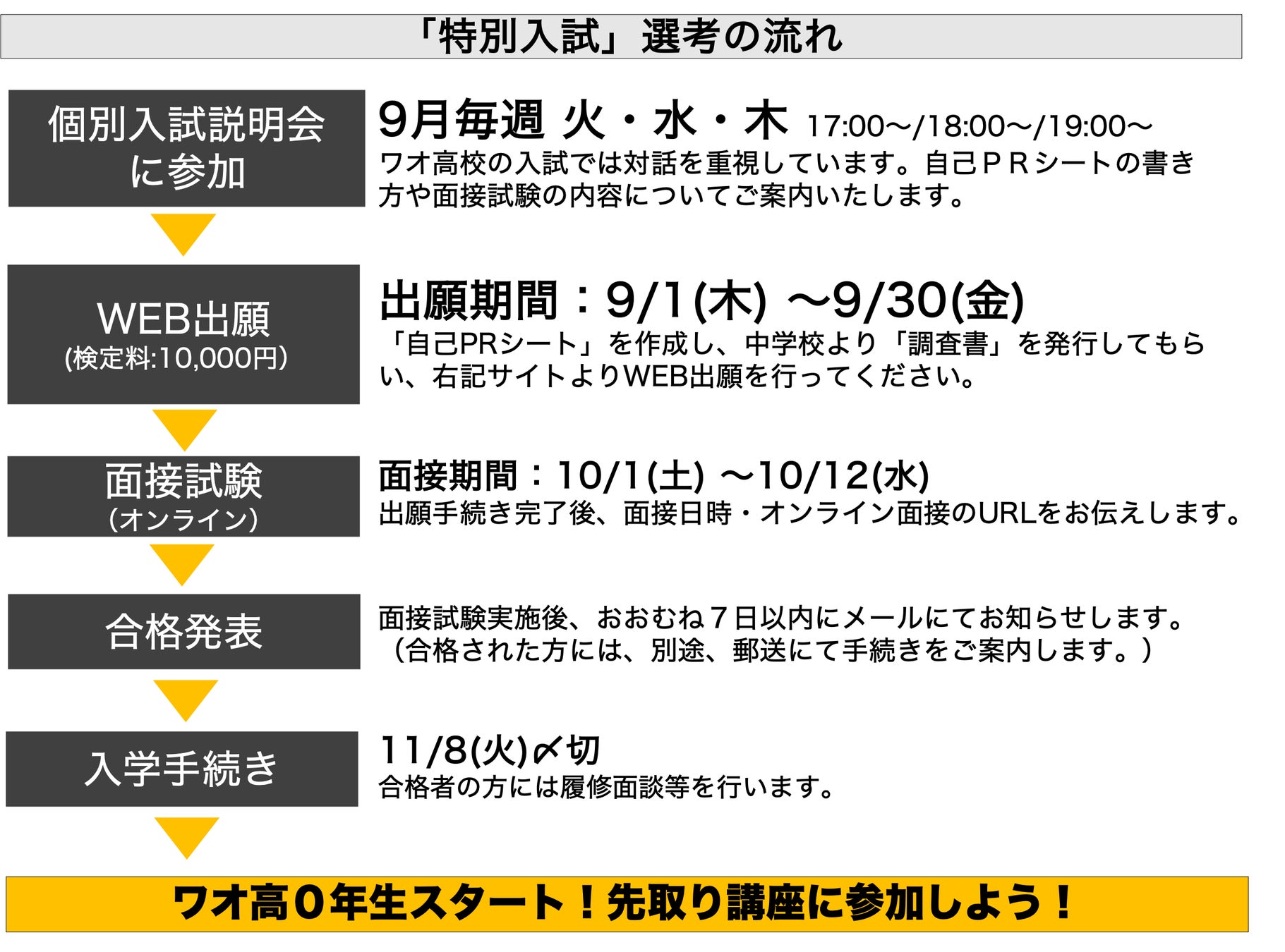 - ワオ高校 2023年度 「特別入試」 WEB出願【A日程】