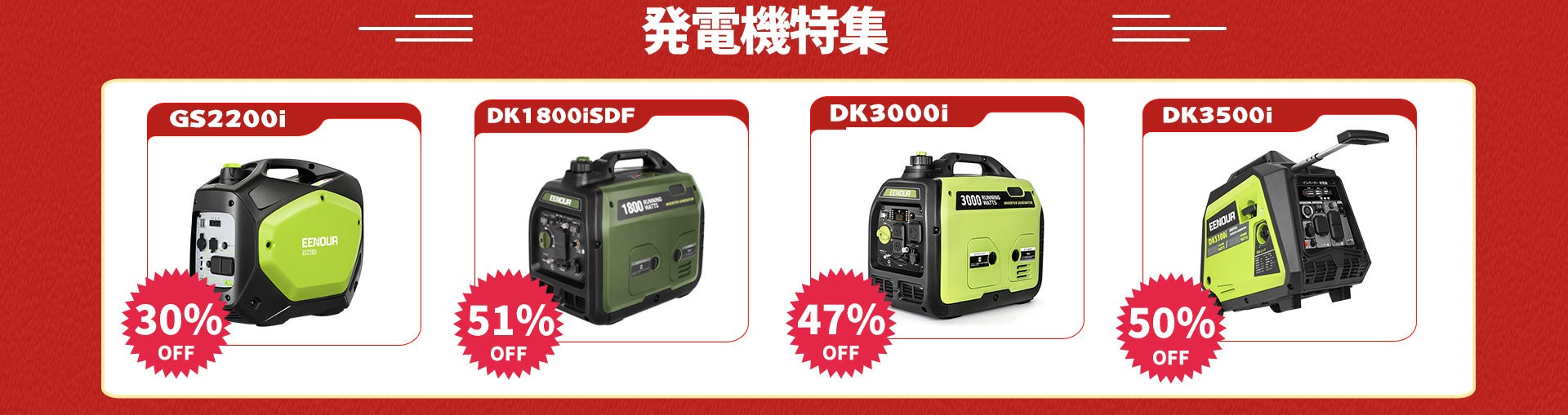 取扱い商品:ポータブル電源、ソーラーパネル、発電機、電動工具、照明器具、他