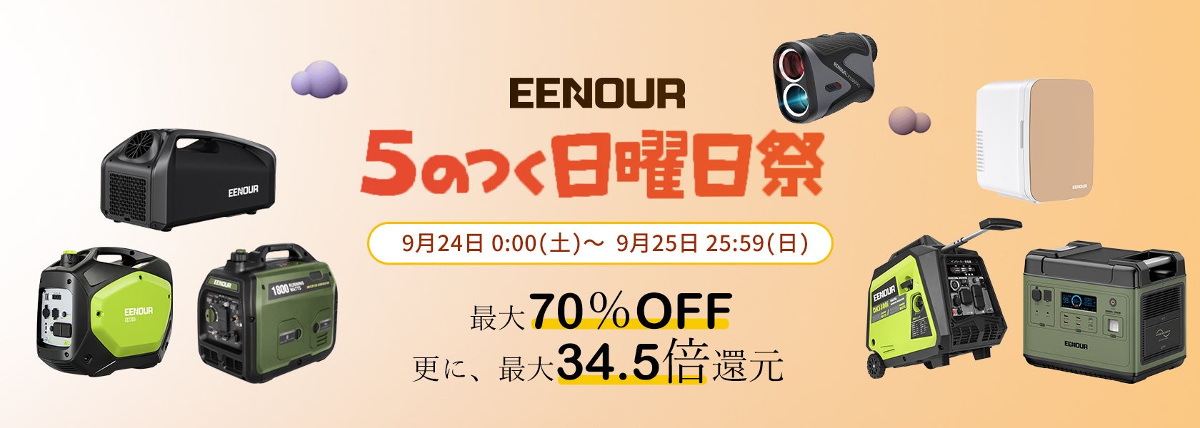 EENOURポータブル電源、発電機、ポータブル冷蔵庫など人気アイテム勢ぞろい!