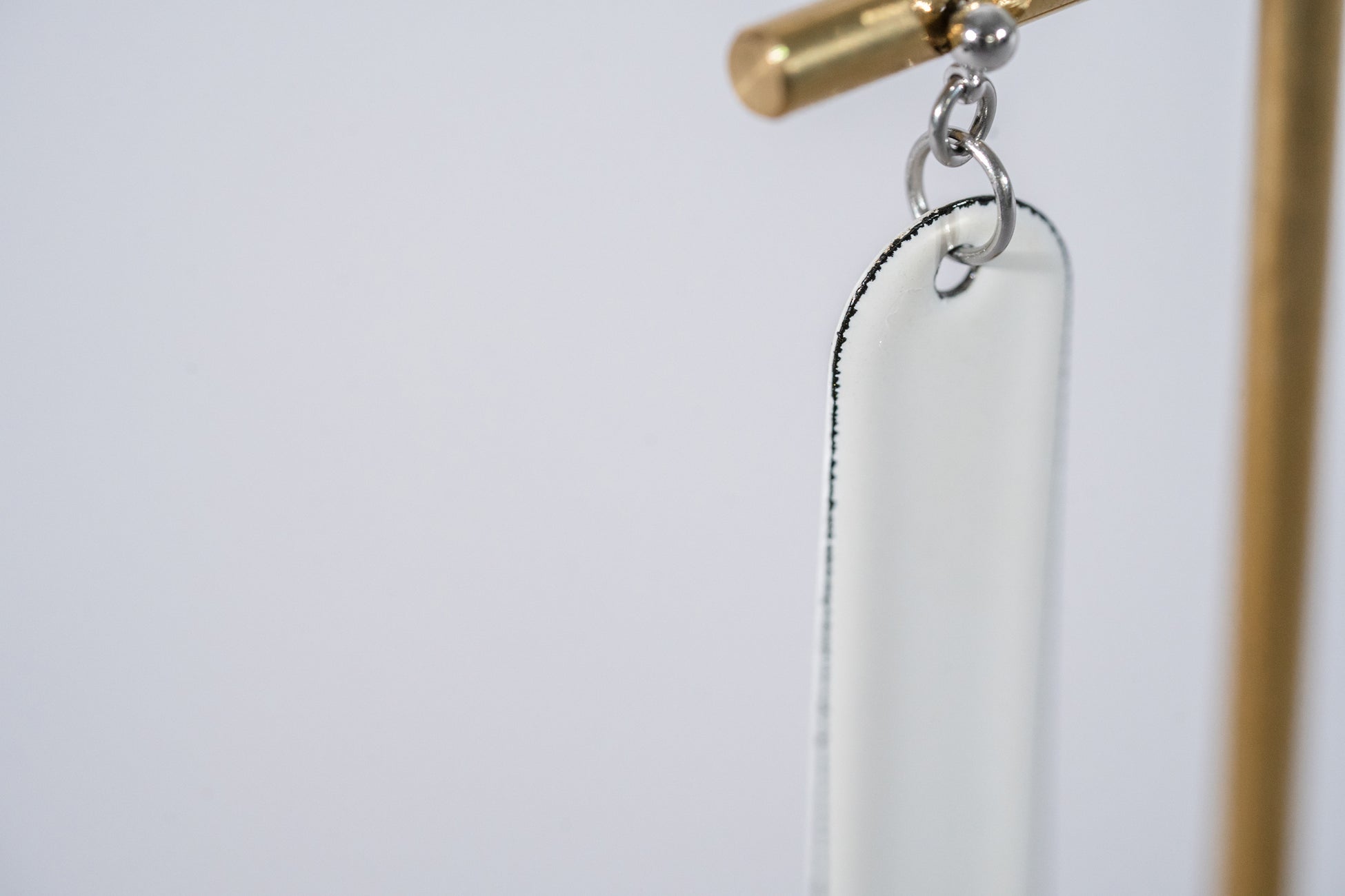 繋ぎパーツは少し高級感のある金色ときらりと光るストーンがポイント。チャームの琺瑯(ホーロー)は小さくて可愛らしいサイズの20mmを採用し独特の光沢と質感が特徴です。whiteは焼き切れがアクセントとなり、顔回りの印象を華やかにします。