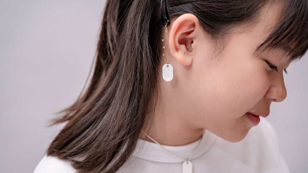耳に穴を開けなくても、耳たぶを挟まなくても楽しめる、新発想のアクセサリー「マイヤリング®」。髪に留める構造で、チェーンやモチーフが自然に耳元に沿って揺れるデザインは、耳への負担が少なく、小さなお子さまでも安心して身に着けられます。イヤリングの痛みやピアスホールの有無に悩むことなく、「お子さまから大人の方まで、すべての人におしゃれの自由を届けたい」という想いから生まれました。