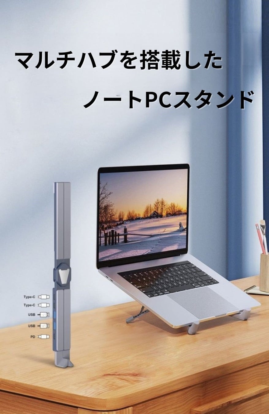 ノートPCスタンドに5つのUSBハブを搭載。拡張性が向上し、より便利に!姿勢改善にも貢献します!