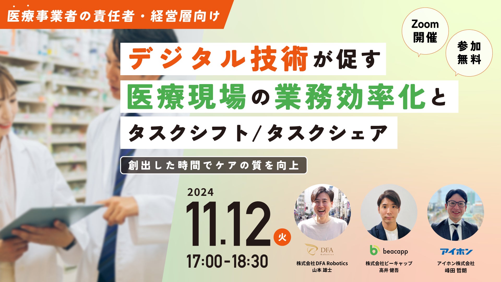 11月12日(火)【デジタル技術が促す医療現場の業務効率化とタスクシフト/タスクシェア】セミナー開催のお知らせ