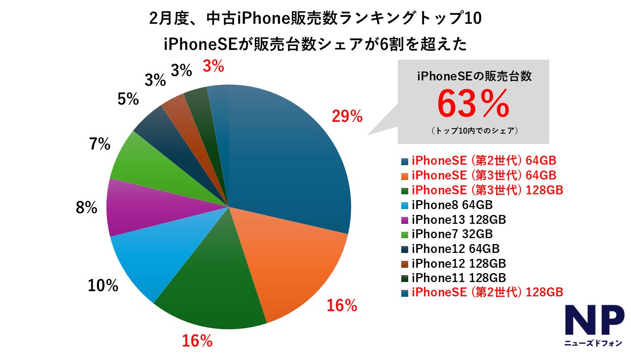 中古iPhoneSEが販売好調、トップ10の販売数シェア6割を超える