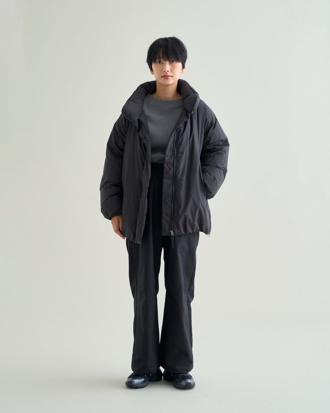 肘を曲げた際にダウンが潰れないよう、袖は前ぶりの設計にして切り替えが設けられているほか、日常シーンでの着用感を配慮されたサイズ感も特徴です。
