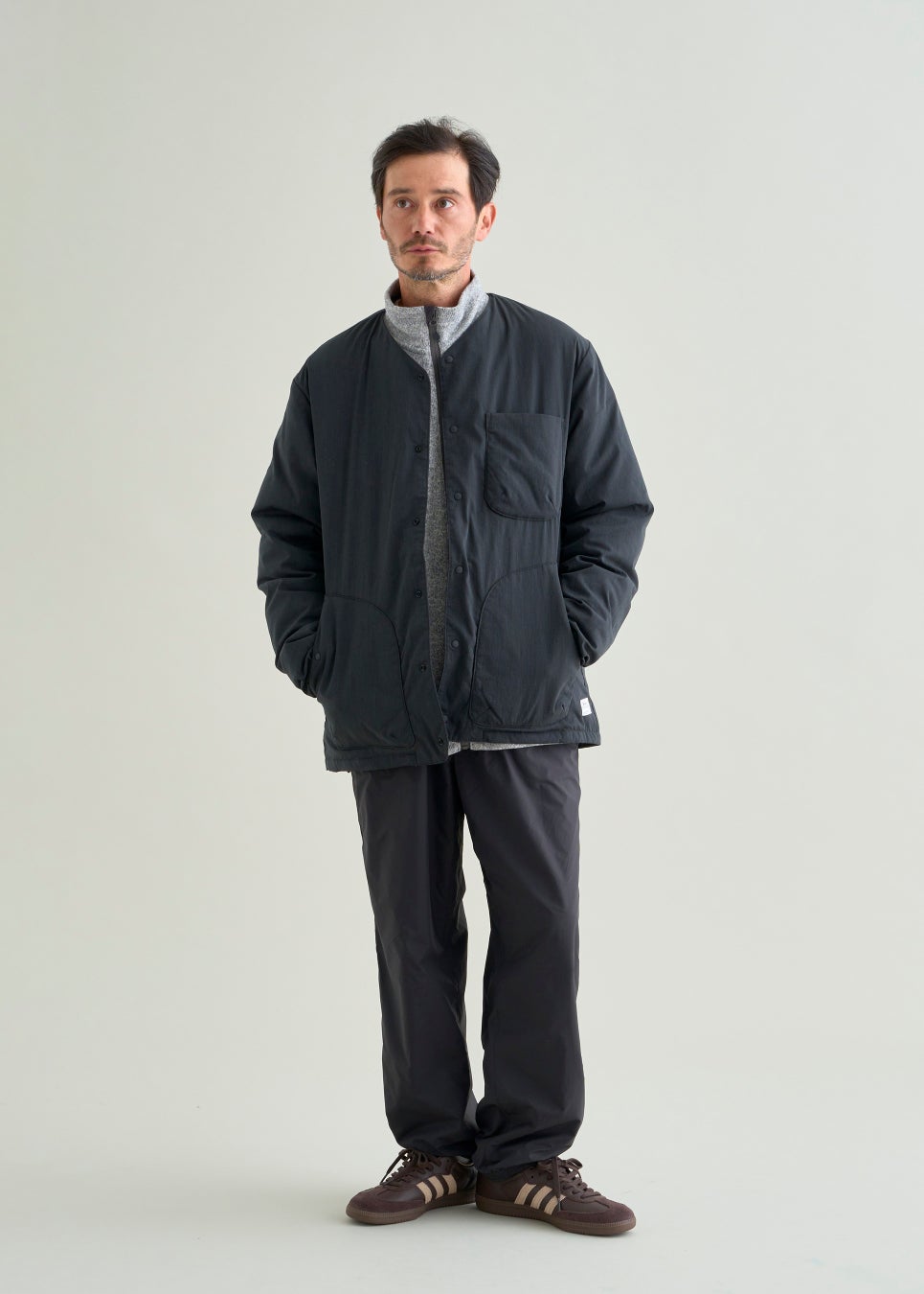 表地と裏地にしなやかな10Dのサイクルナイロン素材を仕様しており、フロントや袖、ポケット口をストレッチテープでバインディングして、よりソフトな肌触りと着心地を実現しました。