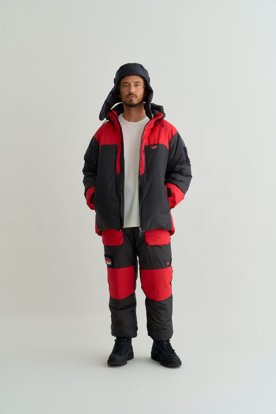 ナンガパルバットの一部に存在する切り立った尾根・マゼノリッジを彷彿とさせるアシンメトリーデザインのダウンジャケットです。