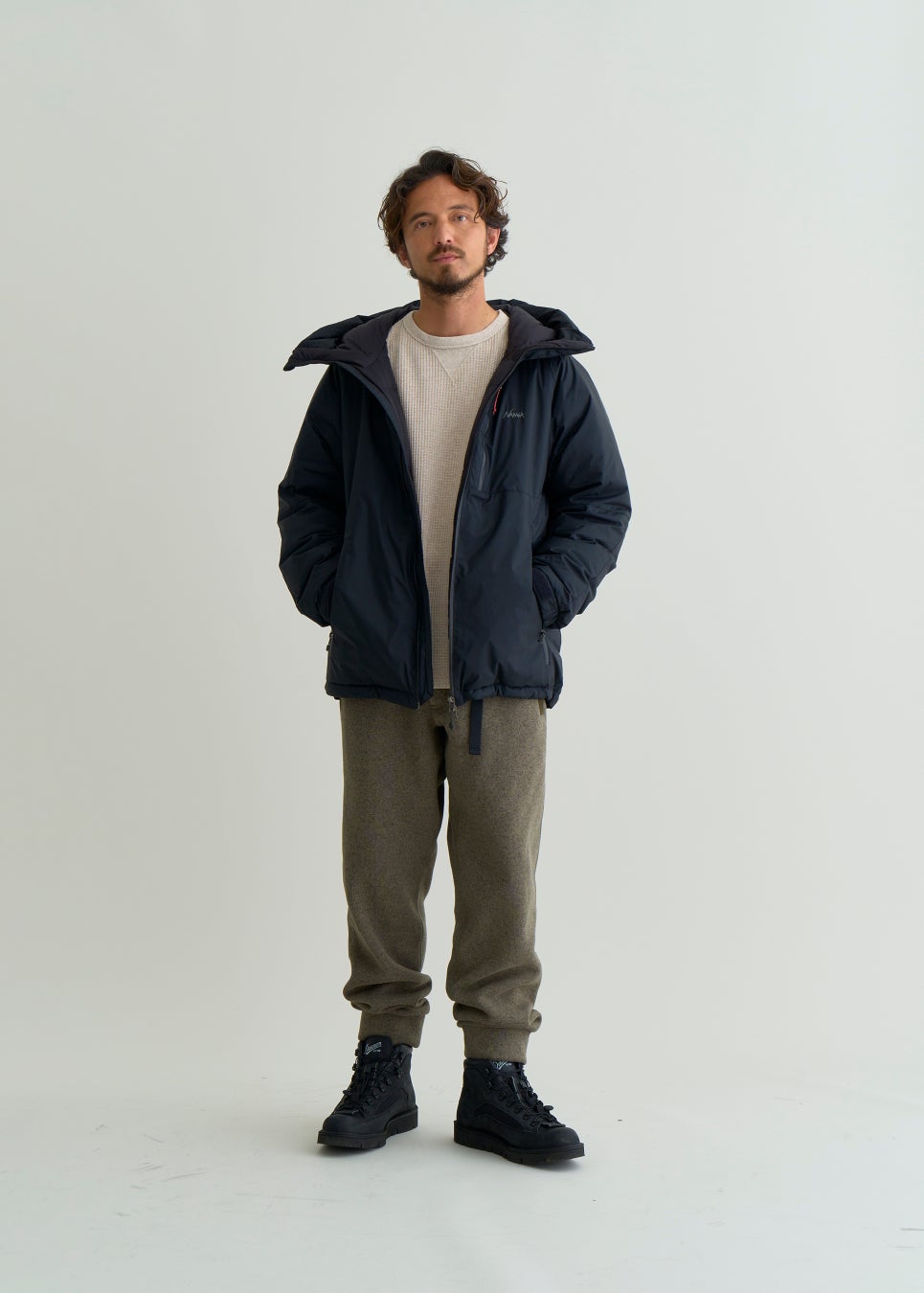 レベル7の構造理論を投入した日本製のモデルで、寝袋に用いられるボックスキルト構造をジャケットに採用し、保温性を向上させました。