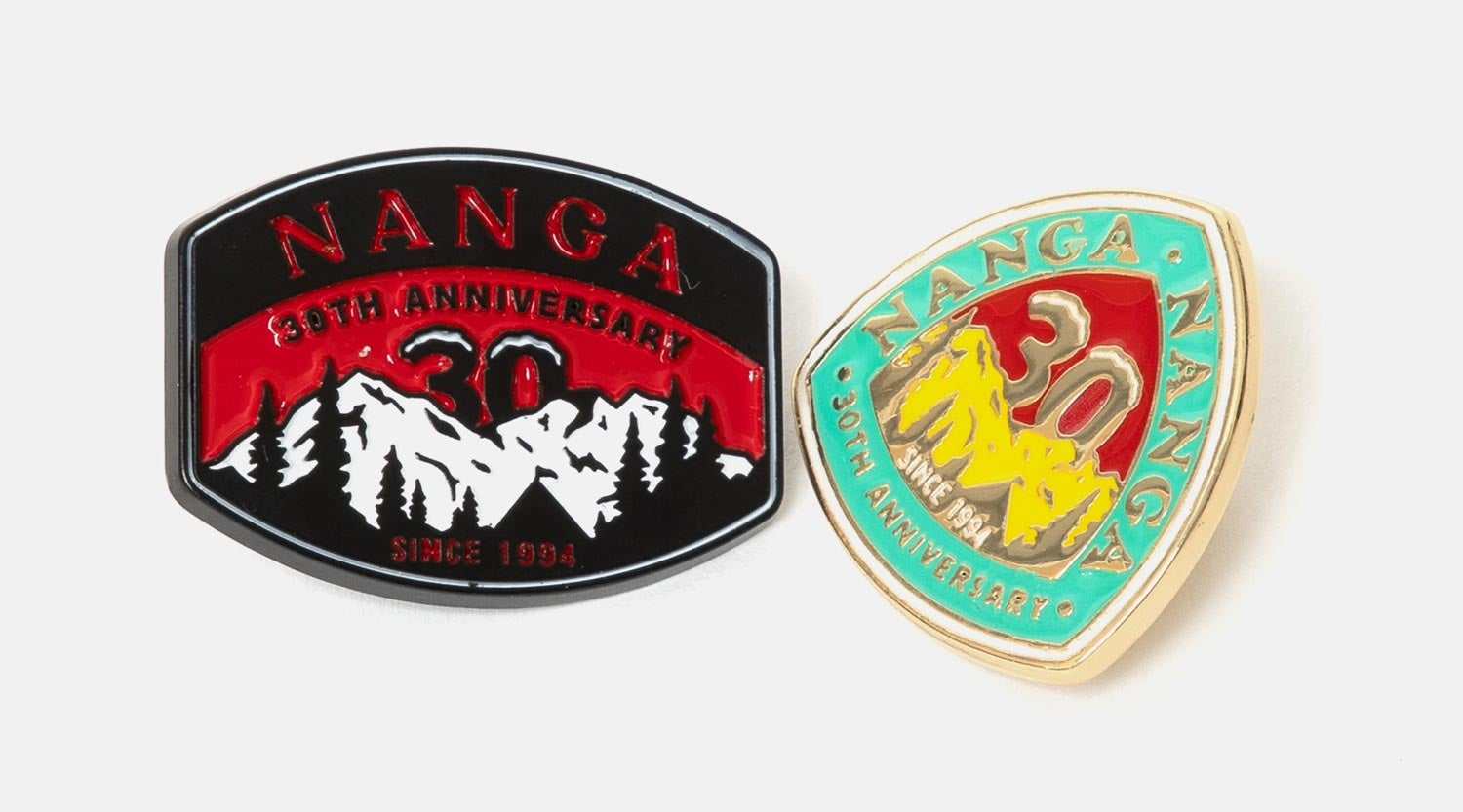 また、NANGA 2024FW DOWN ITEMS ORDER FAIRでは、予約購入いただいたお客様にノベルティーとしてNANGA30周年限定デザインのピンバッジ(2種類1セット)を先着順でプレゼント!