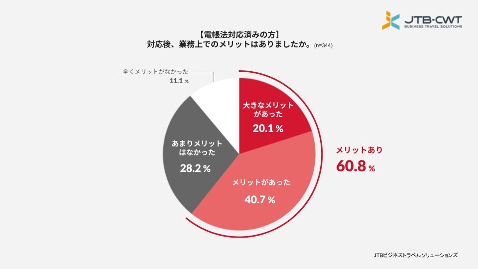 図5で示している通り、電帳法に対応している企業の60.8%で、業務上のメリットを感じていると回答がありました。