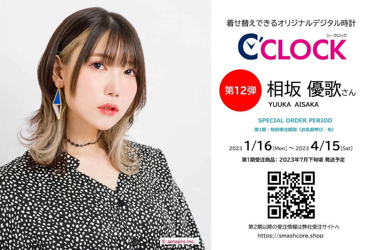 株式会社スマッシュコア エンターテインメント(本社:東京都中央区、代表取締役:福池功)が展開する、データの着せ替えができる仕様のオリジナルデジタル時計【C'CLOCK(読み:シークロック)】。第12弾でご登場いただく声優「プリンセスコネクト!Re:Dive 」アメス役などでご活躍の相坂優歌さん(所属:アプトプロ)モデルを2023年1月16日から受注開始しました。