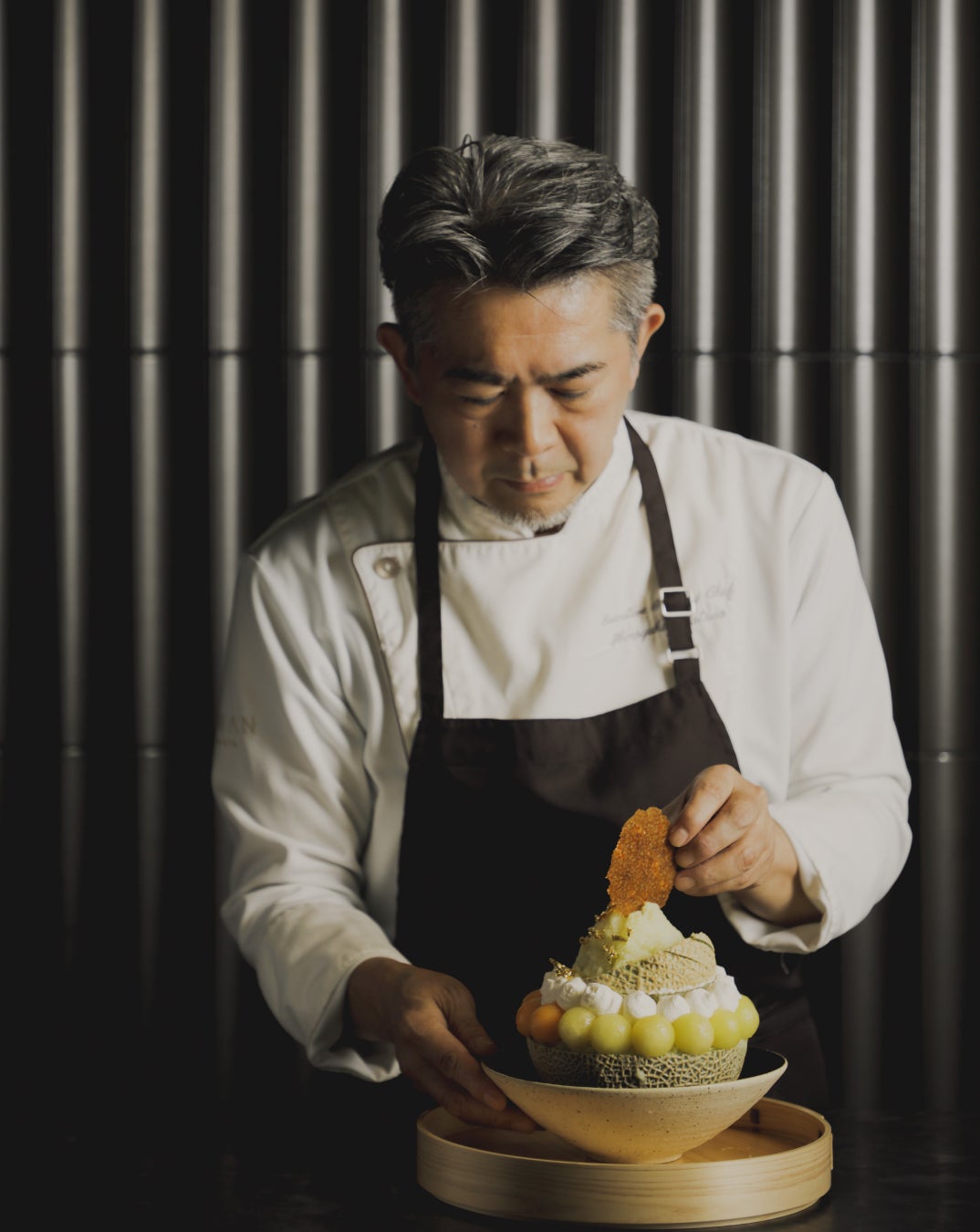 関西のラグジュアリーホテルにて、約40年近い経験に培われた技術と溢れる感性で、独創的なスイーツを数々開発。菓子職人として、ディスプレイづくりもこなし、デコレーションや細工菓子のコンテストにて大阪府知事賞や最優秀賞などの受賞歴を持つ。開業直後から好評をいただいている和菓子のように愛らしい洋菓子のアフタヌーンティーや、季節の旬を反映したクリエイティブなスイーツは、目にも美しく、口福なひとときを届ける。