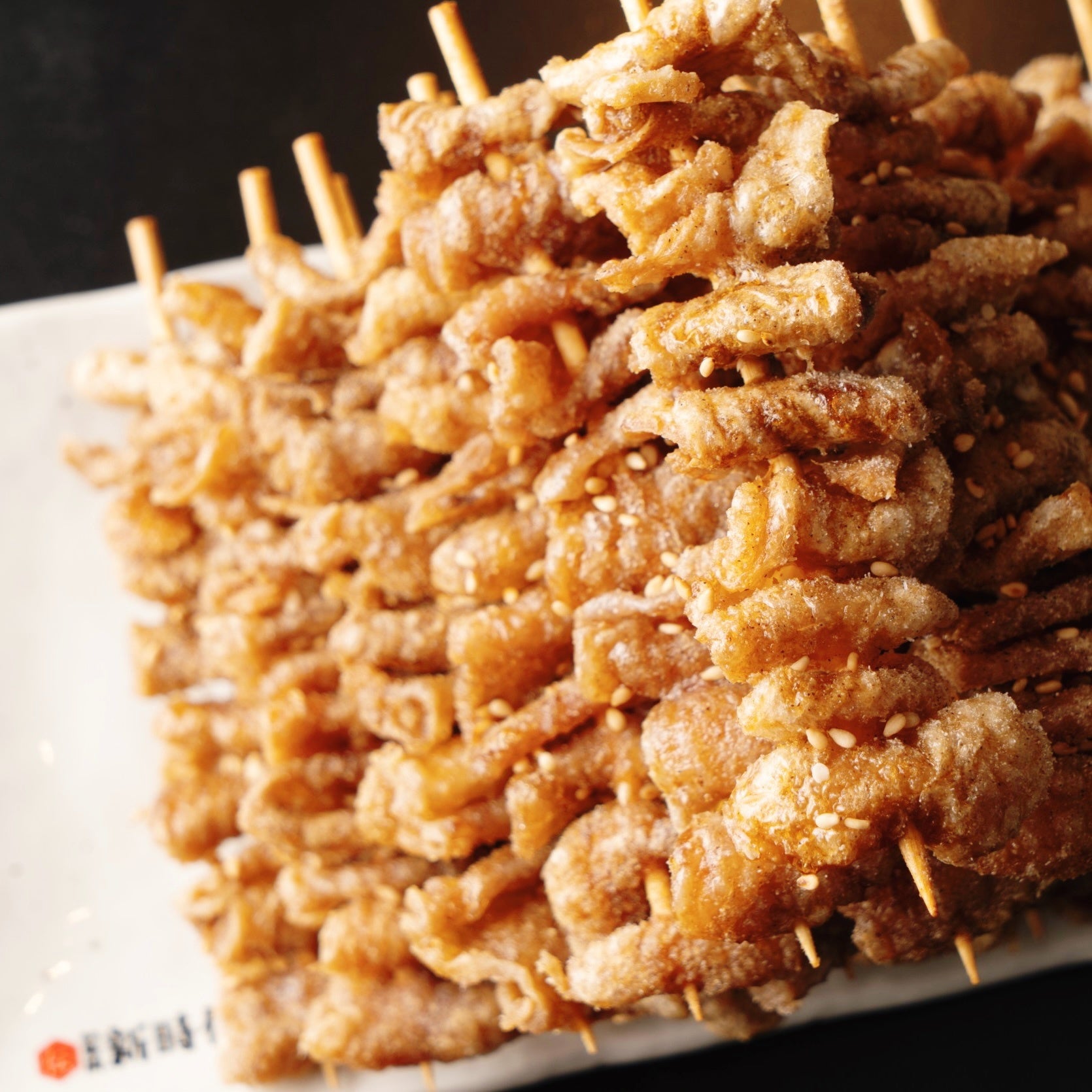 新時代44でも、伝串が1番人気!なかでも、「伝串ピラミッド」は1本50円の伝串を山型に積み上げた商品。伝串を、10本(4段)、21本(6段)、36本(8段)とご注文いただくと、綺麗なピラミッドになります。食べて美味しいは、もちろんですが、見た目の美しさから、写真映えを狙ってピラミッド型で注文される方多数!連日、SNS上に多く投稿されております。