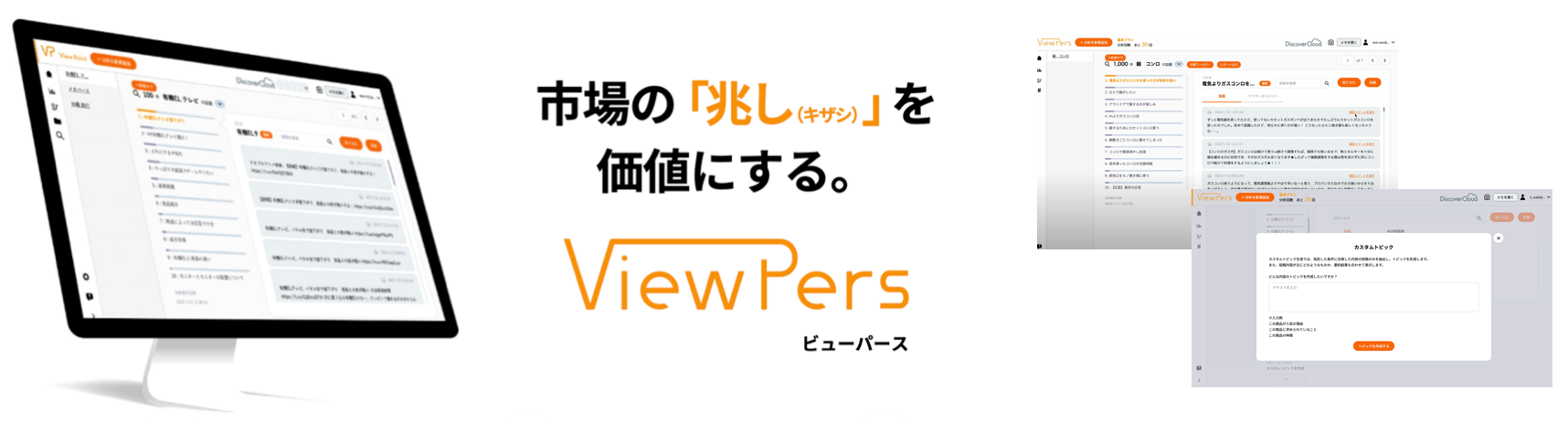 現在も『ViewPers』では膨大なSNS情報のなかから、自然言語処理AI技術と国内最大級のパネルを用いた「人の目」を通すことで『新しい切り口となり得る兆し』を効率的・効果的に抽出し、属人的であるアイディエーションプロセスの可視化・再現が可能な環境を提供しています。