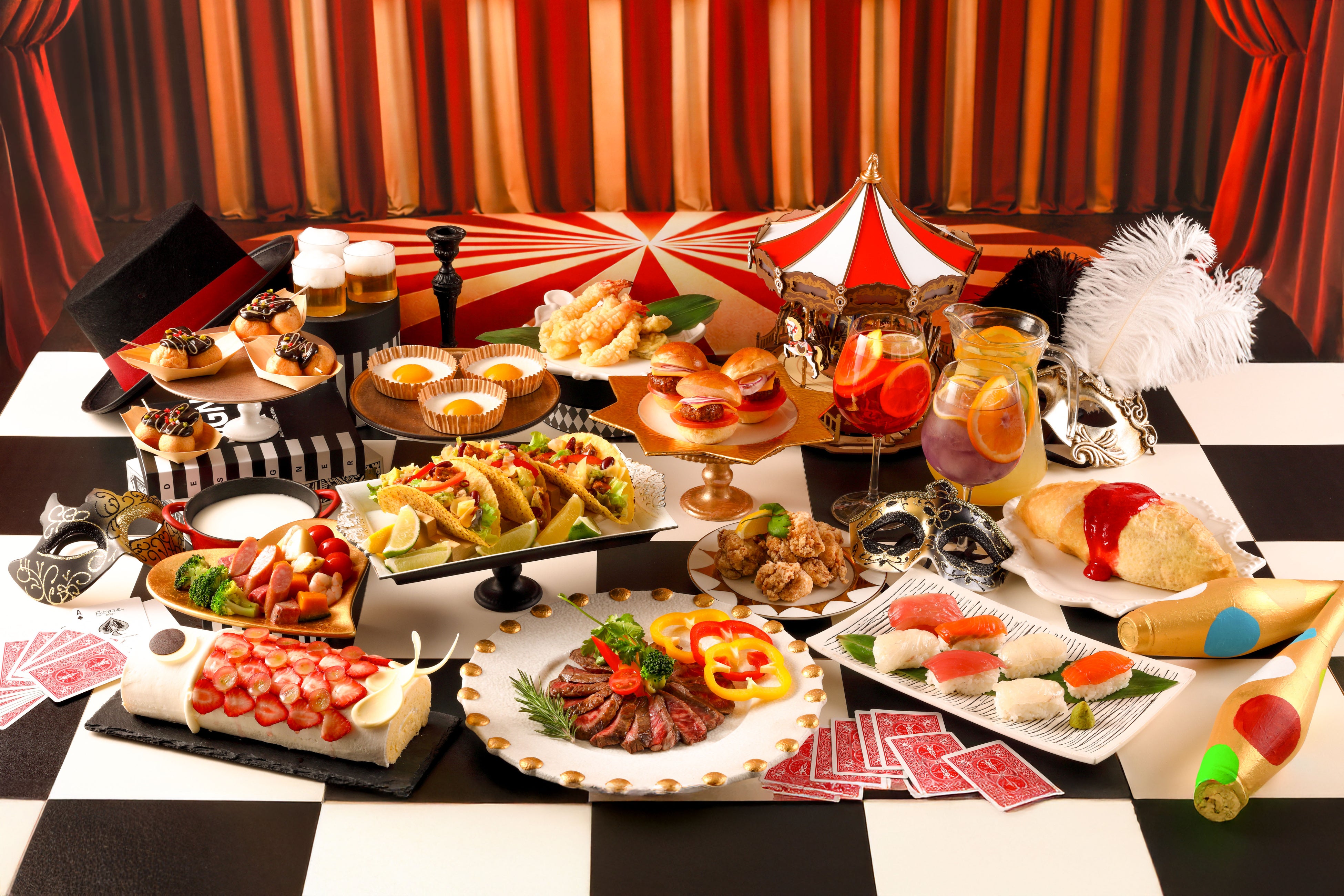 さらに、マジックショーやテーブルを巡るパフォーマンス、色が変わるフルーツポンチなど、目の前で展開される仕掛けもご用意しています。