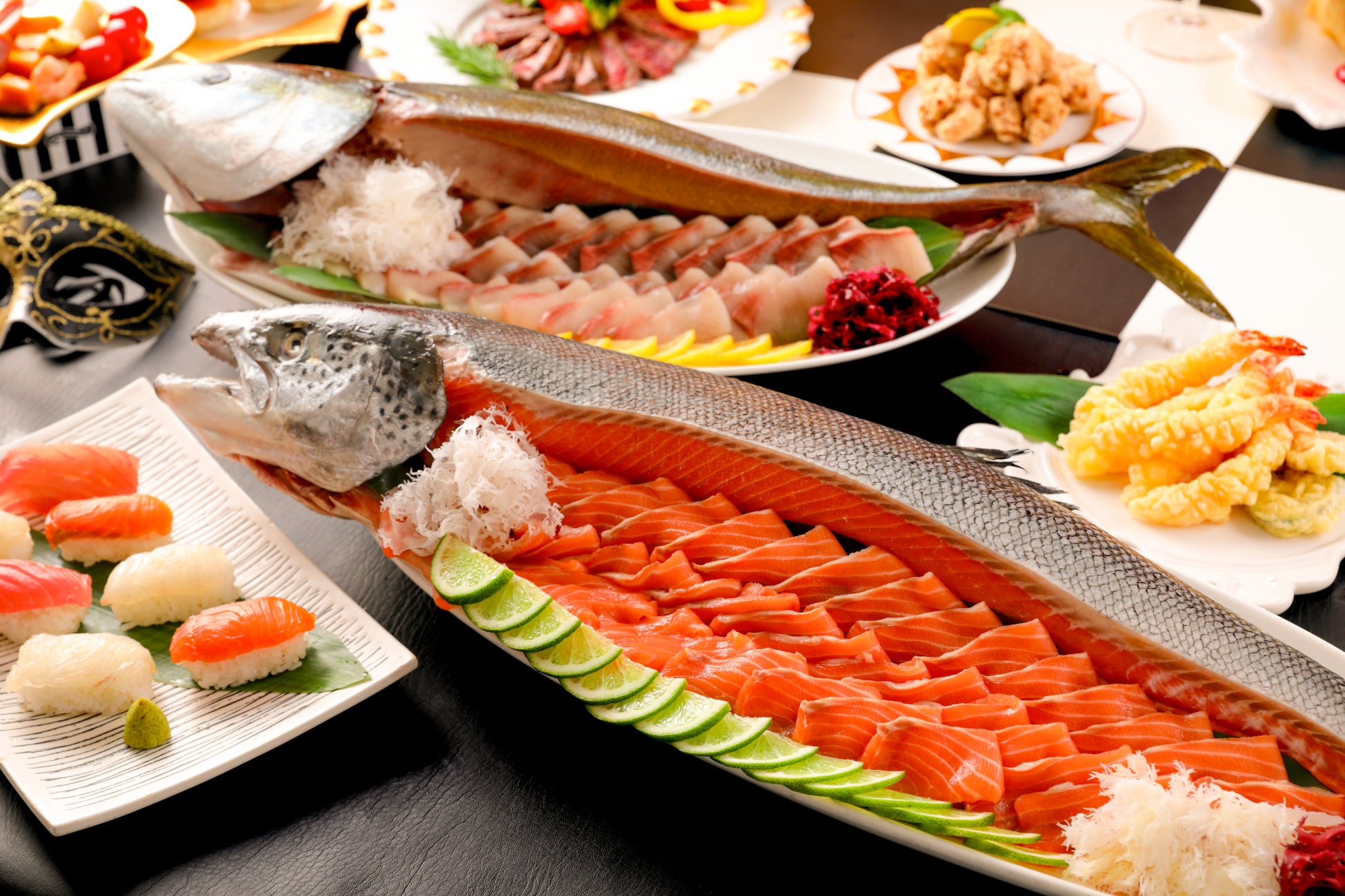 家族で楽しむ、出来たてとライブ感あふれるブッフェシェフが目の前で焼き上げる国産牛ステーキや揚げたての天ぷら、寿司やお刺身、播州ざるラーメン、セルフスタイルのタコスなど、和洋さまざまな料理が並びます。ライブキッチンから立ち上る香りや音に包まれながら、“できたて”をその場で味わう贅沢な時間。