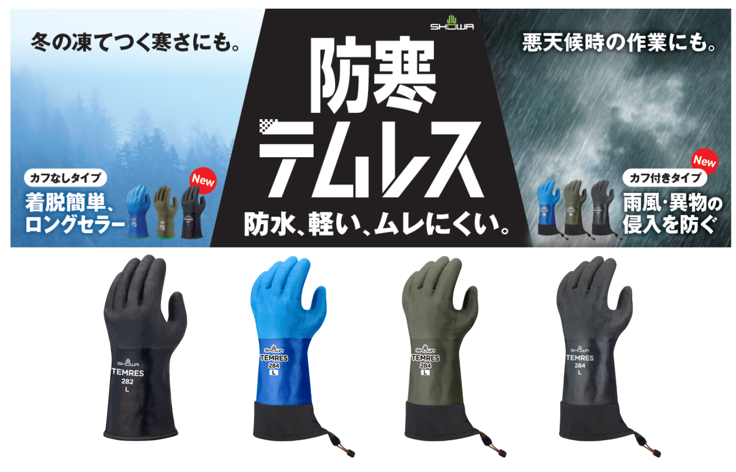 家庭用・産業用手袋の専業メーカーのショーワグローブ株式会社(本社:兵庫県姫路市、代表取締役社長:星野達也)は、防寒テムレスのブラックカラー「No.282 防寒テムレス(タグ付)」、カフ付きタイプの「No.284 防寒テムレス カフ」を2025年8月に発売いたします。
