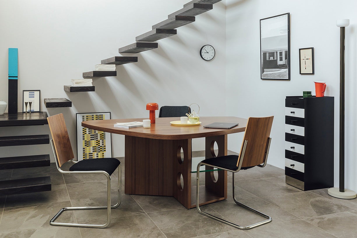 四角でも丸でもない、その不定形で正面のない形状のため、空間のどこに設置しても違和感がないドイツ・TECTA(テクタ)社の「M21テーブル」は、20世紀を代表する芸術学校バウハウスのデザイン思想の流れを汲む機能性と唯一無二のデザインで、1990年の発売以来現在に至るまで30年以上にわたり製造が続けられているロングライフデザインのテーブルです。