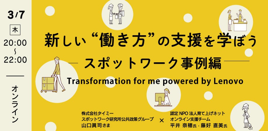 第一弾は、スキマバイトサービス「タイミー」を提供する株式会社タイミーが登壇し、スポットワーク事例編と題してスポットワークアプリを活用した新しい働き方の支援手法を学ぶことができます。