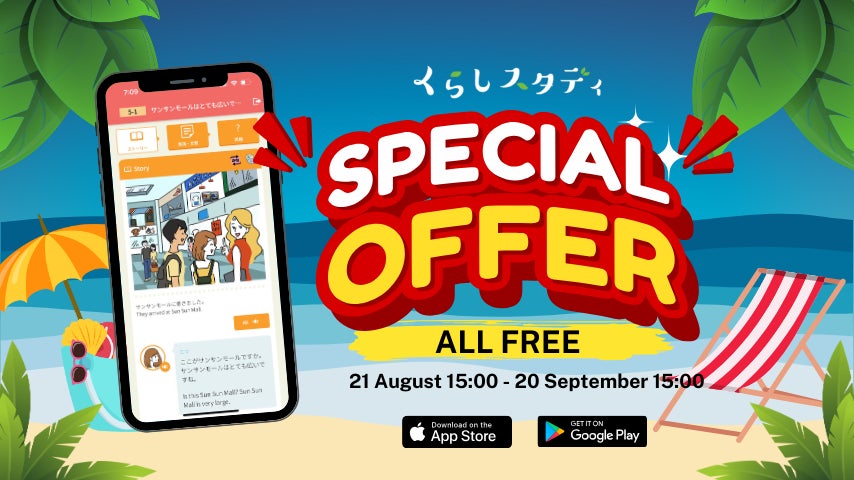 SUN株式会社(本社:東京都港区、代表取締役社長兼CEO:仲宗根俊平、以下 SUN)は、当社が運営する日本語学習アプリ「くらしスタディ」にて、全機能を1ヶ月無料で体験できるキャンペーンを2024年8月21日(水)から9月20日(金)まで開催いたします。