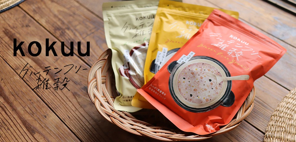 麦類を一切使用していないグルテンフリーの雑穀米ブランドです。混ぜるだけで手軽に雑穀米で栄養を取り入れらる雑穀米です。kokuuでは現在は3商品を展開しており、24種類の国産雑穀をブレンドした「kokuu 雑穀」、タンパク質をより多く摂取できる「kokuu たんぱくプラス」、白い国産雑穀だけを集めた、ご飯に色が付かない雑穀米色がつかない「kokuu 白」、様々なニーズに合わせた商品開発を進めています。