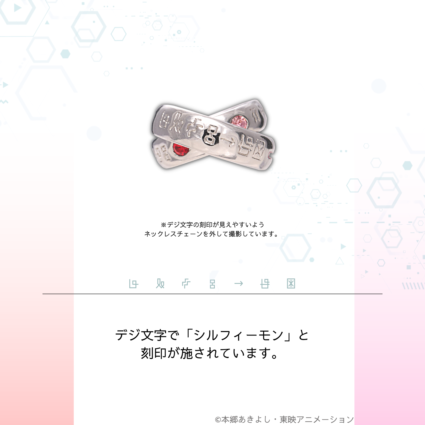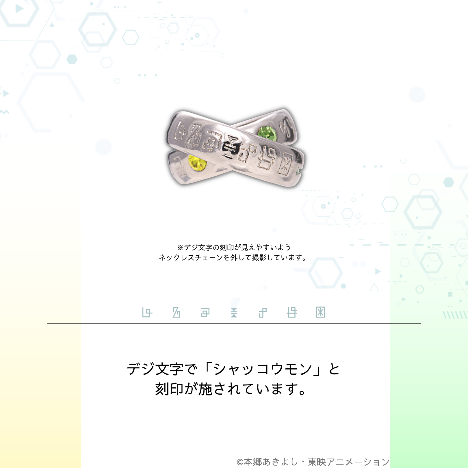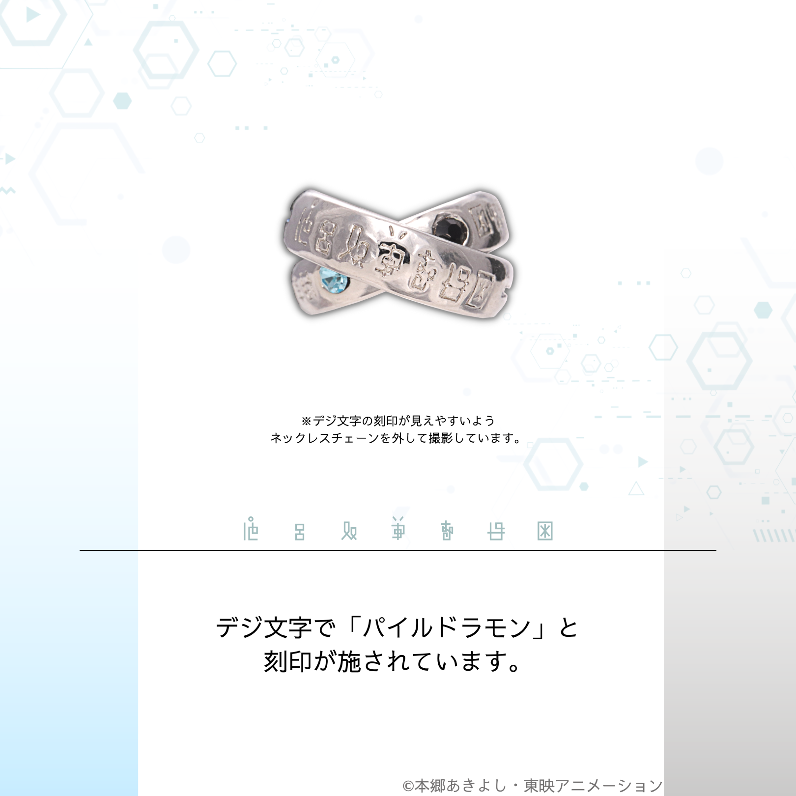 普段使いを意識したシンプルなデザインの中に、子どもたち&デジモンたちの絆を詰め込んだ、大人のアクセサリーに仕上がりました。