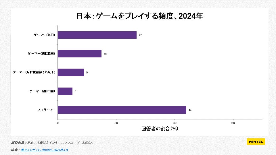情報の出典元として【ミンテルジャパンレポート 『ゲームプレイヤーへのマーケティング 2024年』】の明記をお願いいたします。
