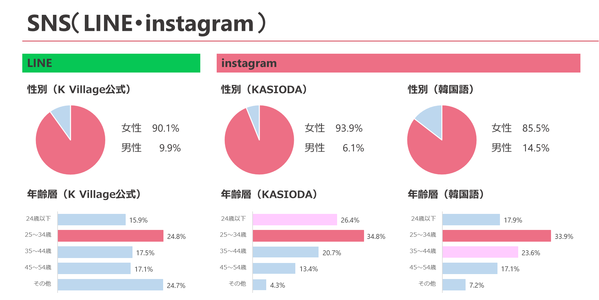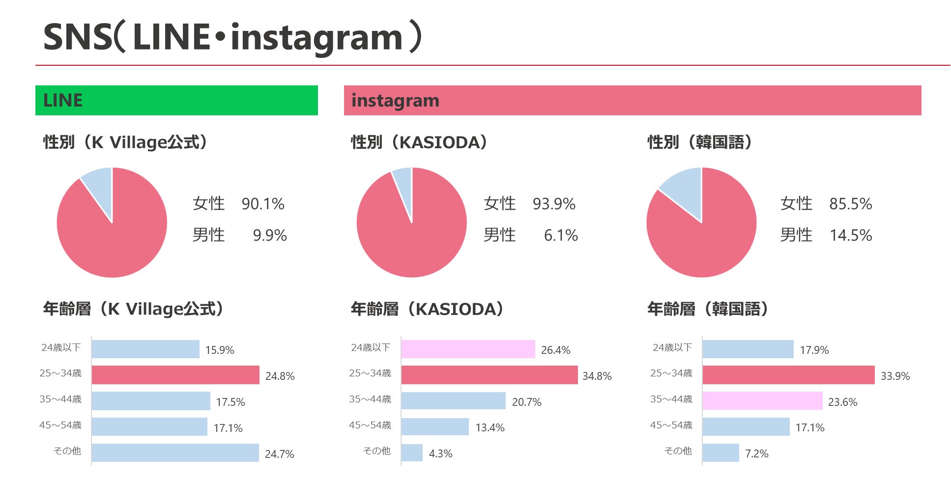 LINE公式アカウント、instagramなどK Villageが管理するSNSアカウントに登録しているユーザー、コミュニティアプリ「K Village MODULY」に会員登録しているユーザーを対象として集計しています。